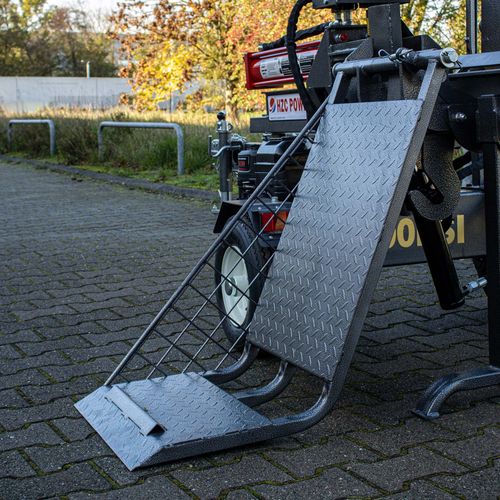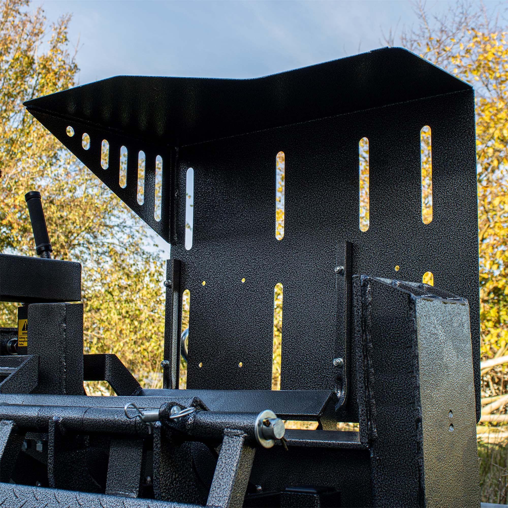 Un marco integrado garantiza una buena adherencia del material de fisión durante el proceso de fisión cuando el vehículo está tumbado. También se pueden guardar trozos de madera en la mesa incorporada. Un filtro de aceite para el aceite hidráulico garantiza una vida útil aún más larga de la cortadora de troncos.