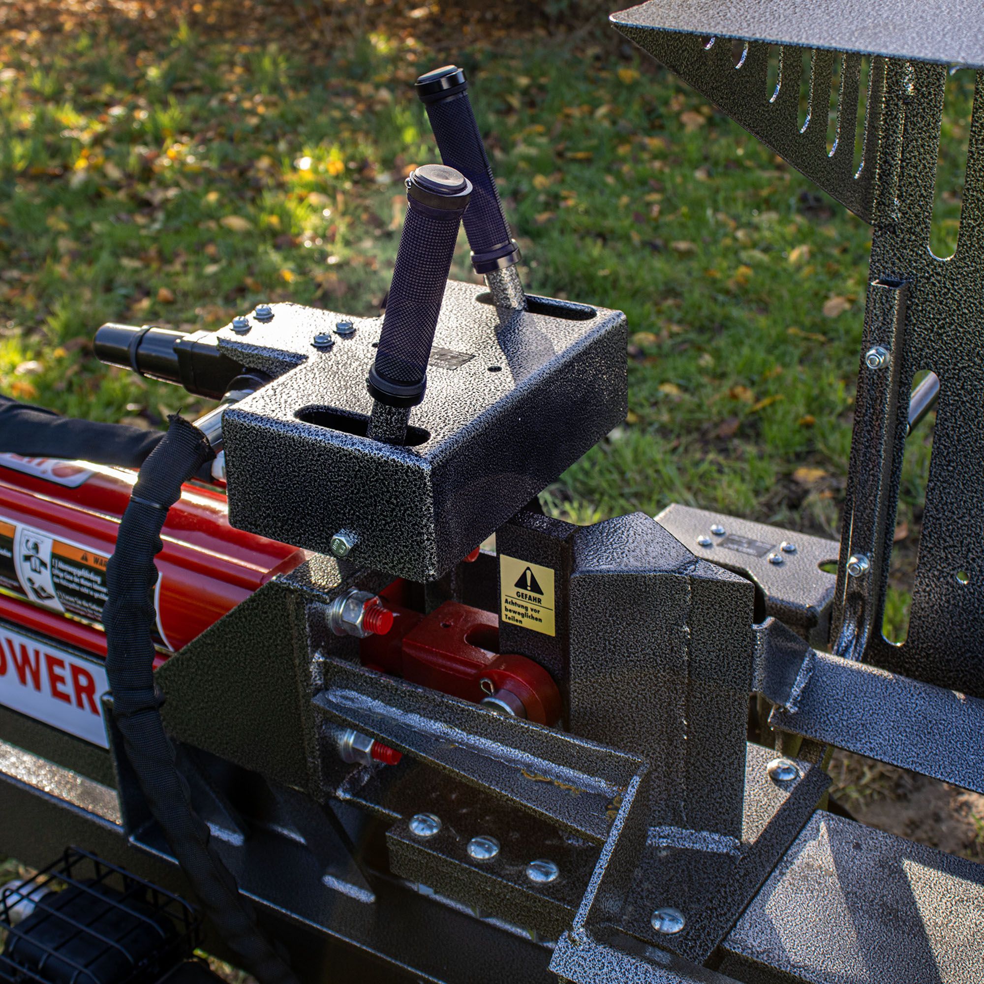 La cortadora de troncos con una fuerza de corte de 25 t puede funcionar en posición horizontal. El divisor también tiene un elevador de varilla, lo que facilita aún más el trabajo. Además, un marco integrado garantiza que los troncos no se caigan del partidor de troncos tumbado. Por último, el funcionamiento con dos manos garantiza la seguridad de sus manos.