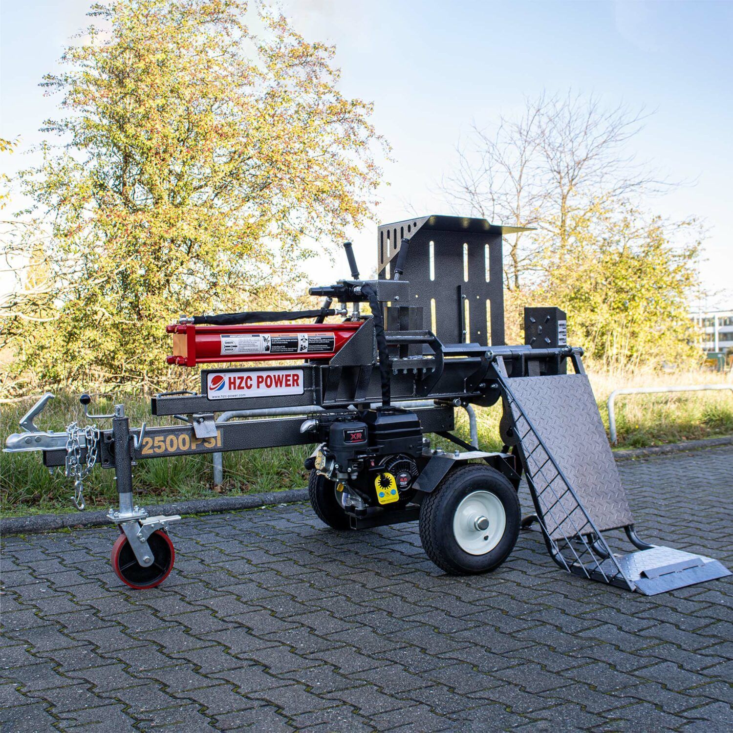 El partidor de troncos de gasolina HS25205 de HZC Power es un partidor de troncos con una fuerza de corte de hasta 25 t y puede partir troncos de hasta 600 mm de largo. El divisor también tiene un elevador de varilla, lo que facilita aún más el trabajo. Además, un marco integrado garantiza que los troncos no se caigan del partidor de troncos tumbado. Por último, el funcionamiento con dos manos garantiza la seguridad de sus manos.