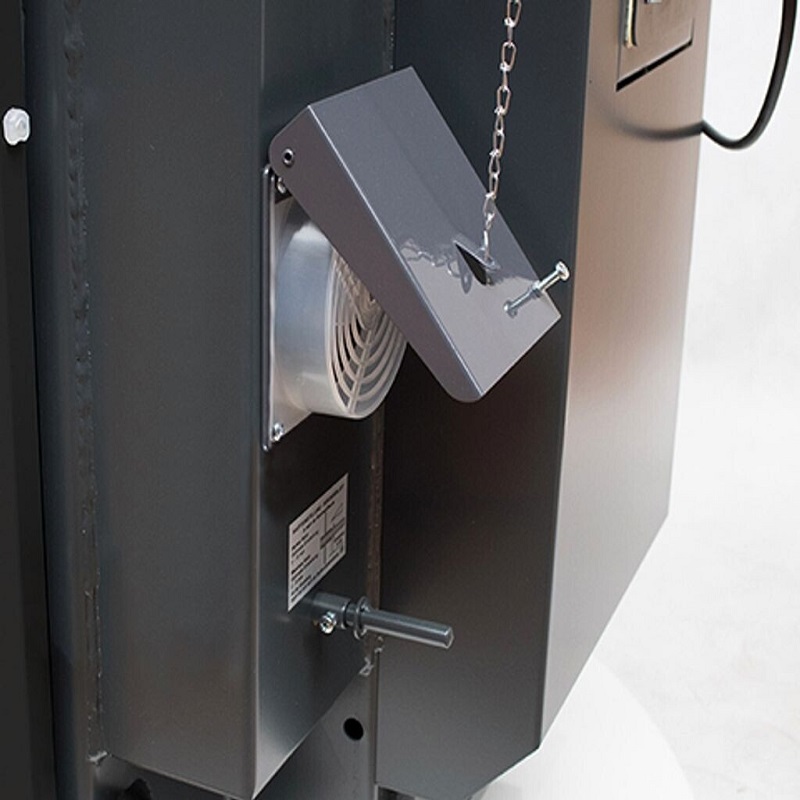 La Atmos GS15 es una caldera de gasificación de madera con una potencia de aproximadamente 15 kW, que, según el fabricante, es adecuada para leña de hasta 250 mm de longitud.